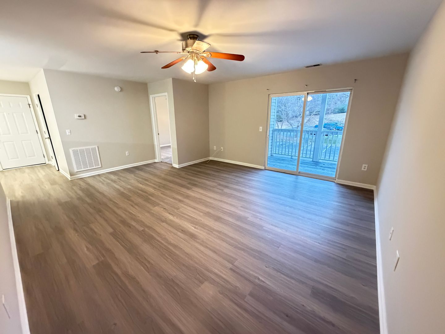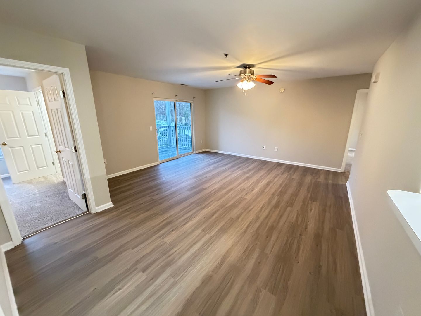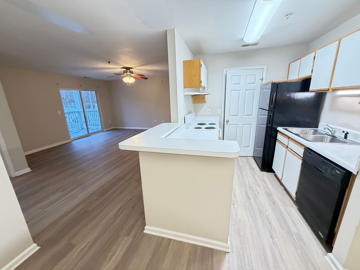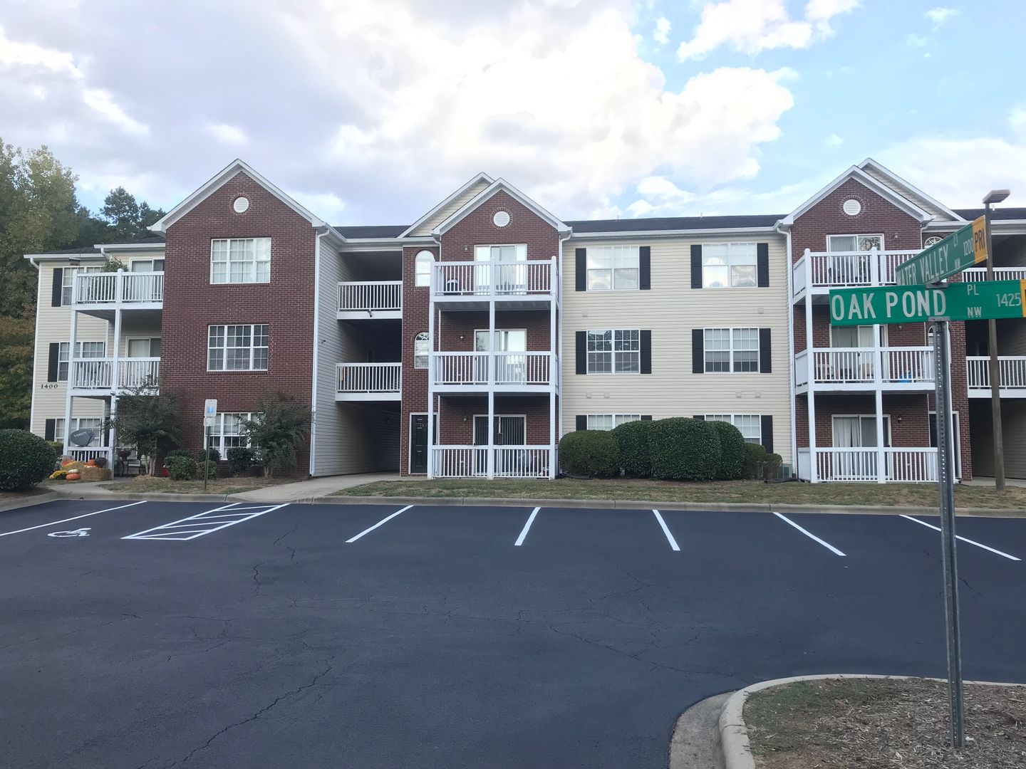 2nd floor 2 Bed/2 Bath 1055 sq. ft. Both bedrooms have walk-in closets that are 6 ft. deep. Have full kitchen with dishwasher with a dining area separate from the large den. Washer/Dryer hookups in separate room through kitchen for noise reduction. Great deck or patio for outside area. The community is small and quiet in a country setting with only 40 apartments in the complex. Just minutes to I-85 and Concord/Kannapolis shopping. The property is very well maintained!!