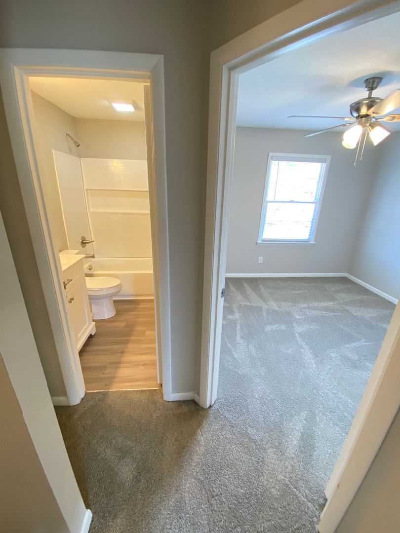 Located less than 5 minutes away from the heart of downtown Kannapolis! 2 bedroom/1.5 bath newly renovated apartment. With brand-new appliances, flooring, countertops, cabinets, carpet, and much more, this space offers updated features while still keeping the charm of a cozy, all-brick home. With both spacious bedrooms located upstairs, you will be able to enjoy a large living area leading into the kitchen. This apartment also includes a back porch area right off of the kitchen and a half bath located in the dining area.